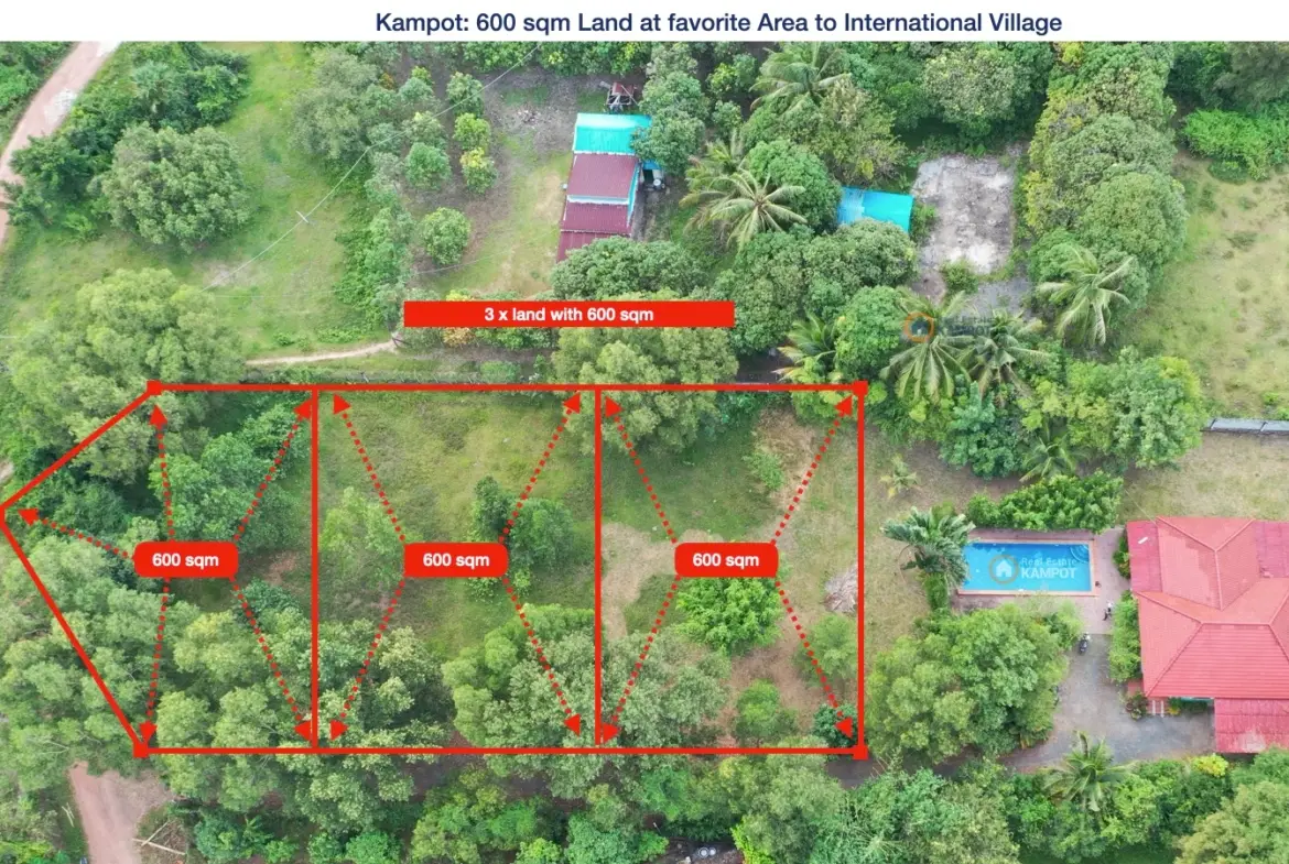 Kampot: 3 Plots -600 sqm- Land at favorite Area to International Village