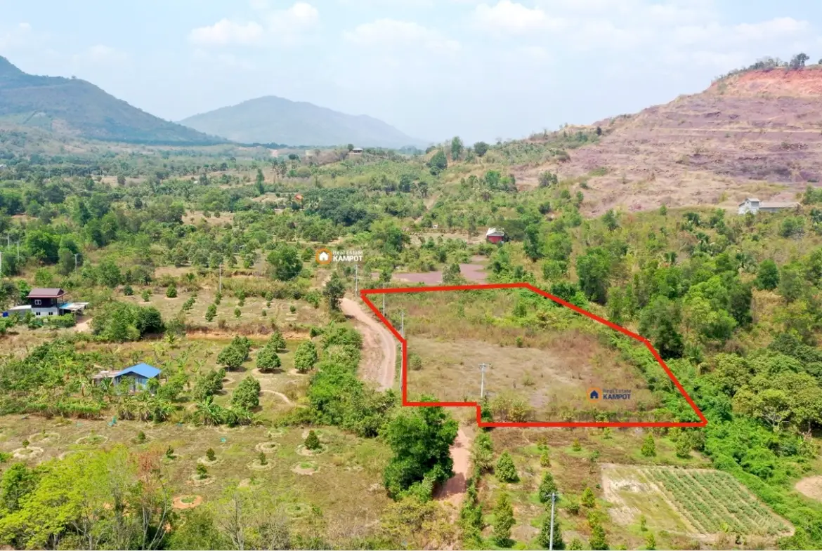 This exceptional plot of land offers a rare opportunity in Kampot, located close to the scenic mountains of Bokor Hill National Park. With high investment potential and a prospective concrete public road leading to a development area, this property is perfectly suited for business or long-term investment.