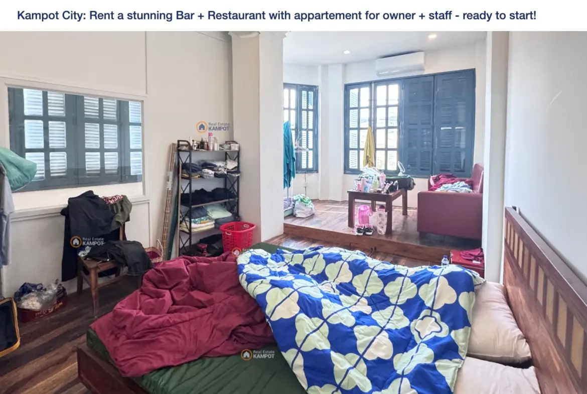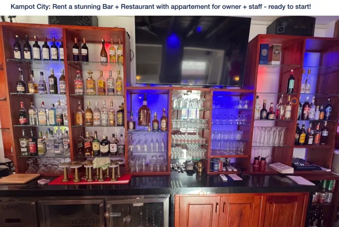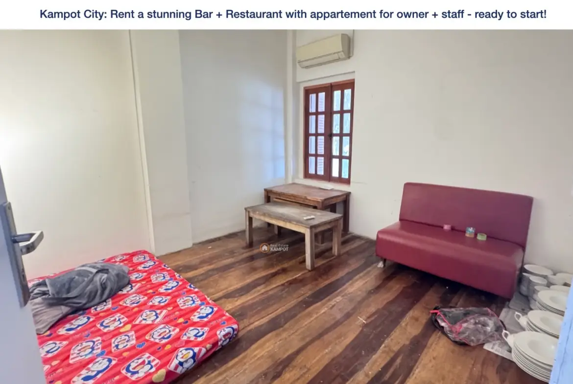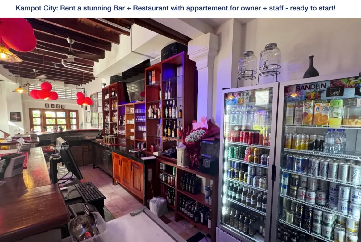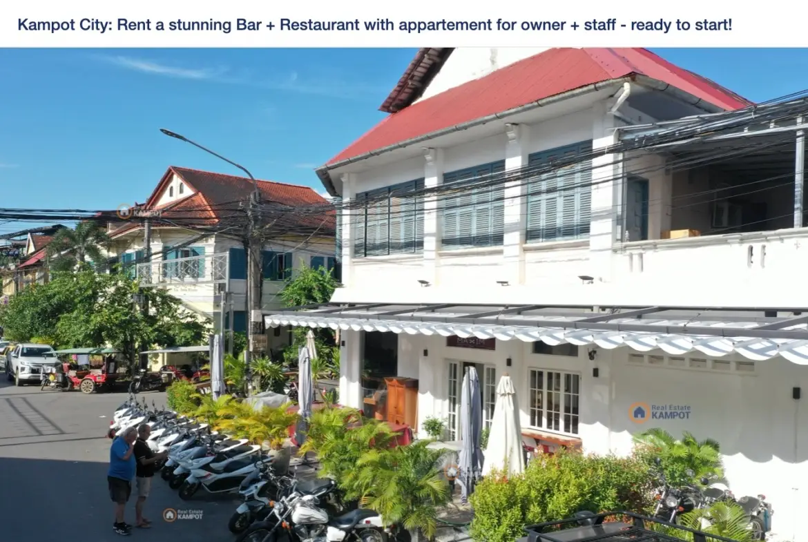 Kampot City: Rent a stunning Bar + Restaurant with appartement for owner + staff – ready to start!