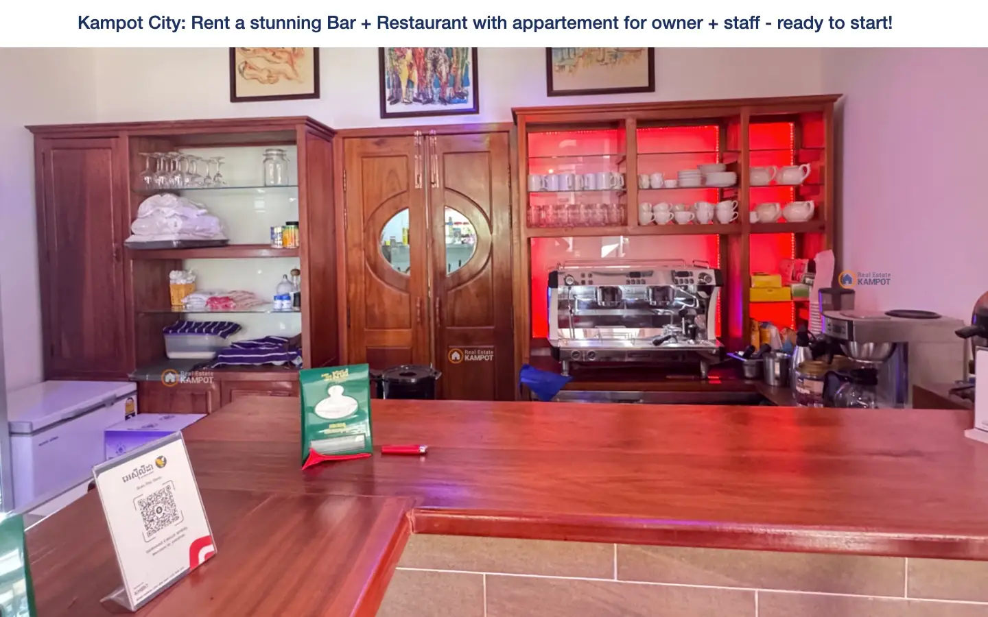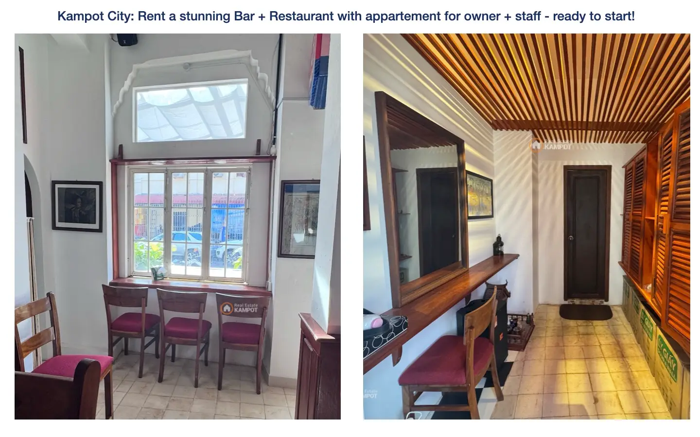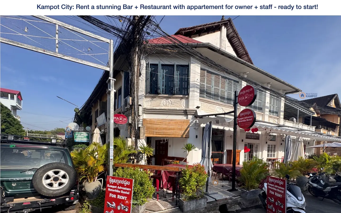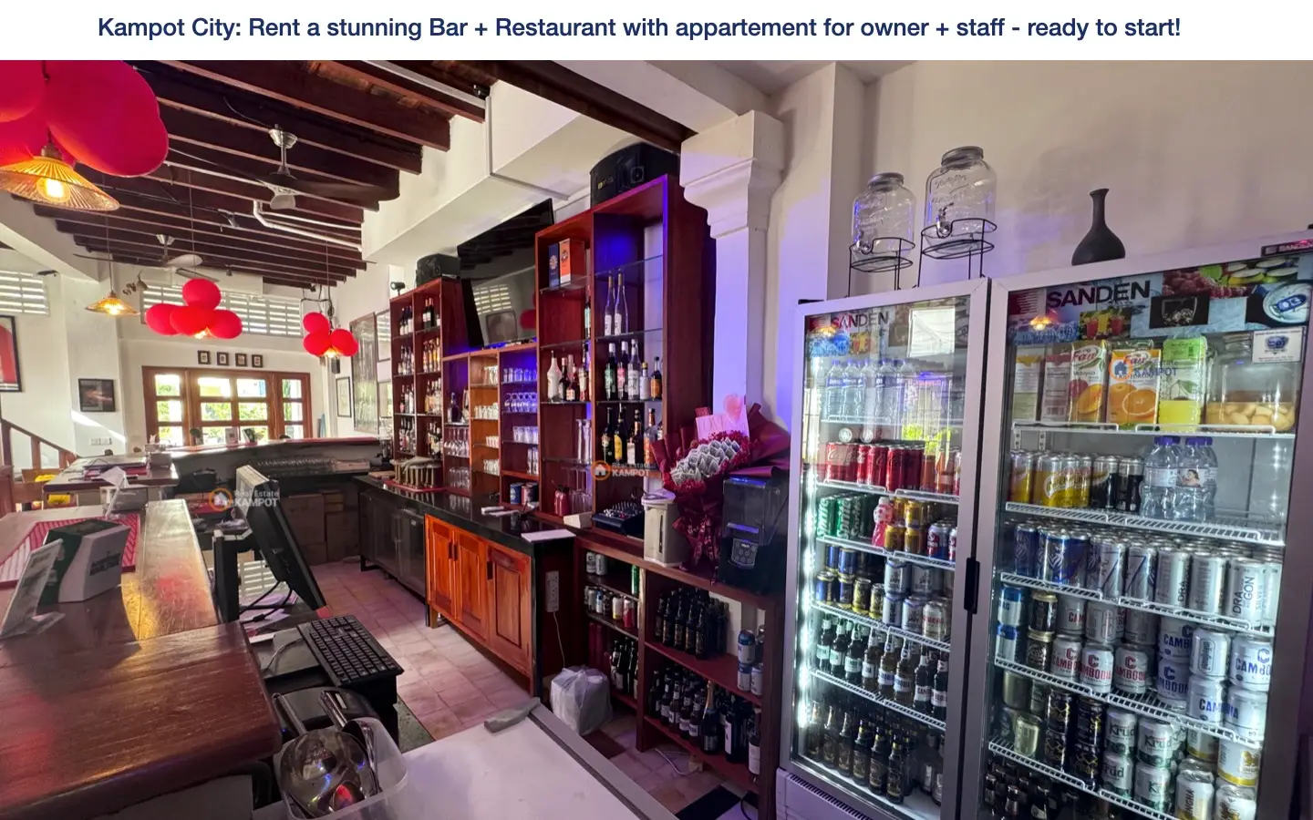 Kampot City: Rent a stunning Bar + Restaurant with appartement for owner + staff – ready to start!