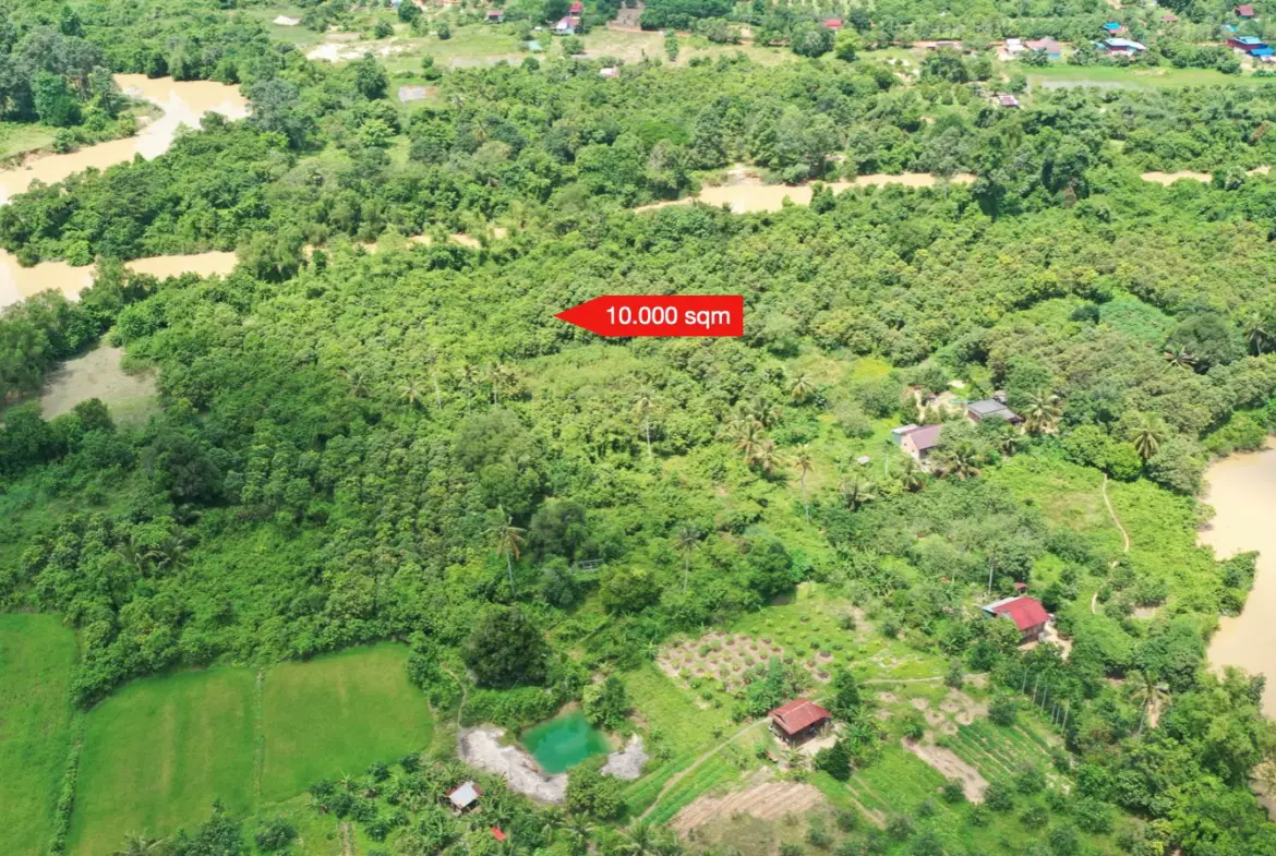 Amazing land directly to the river and with a fantastic view of the Bokor mountains, ready to realize your dream for a Villa or Resort! Directly drive (6 km) to National Road #3.