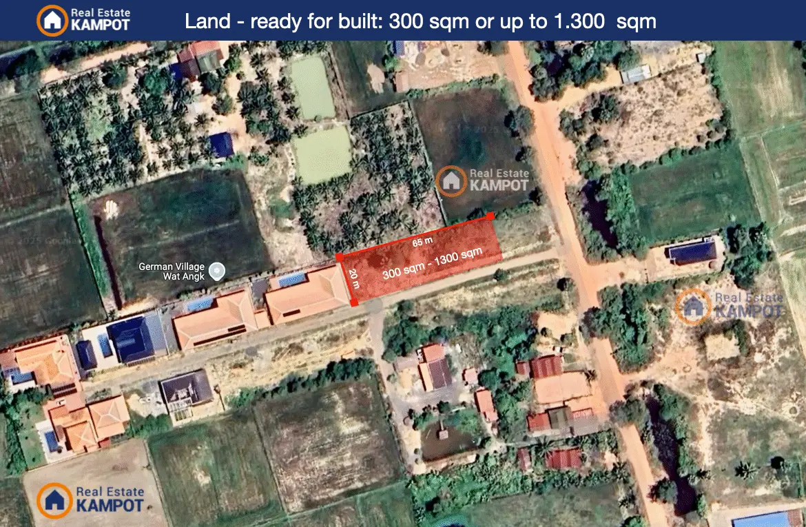 Area size is 300 sqm and ready for building your home with a cambodian strong hard title.