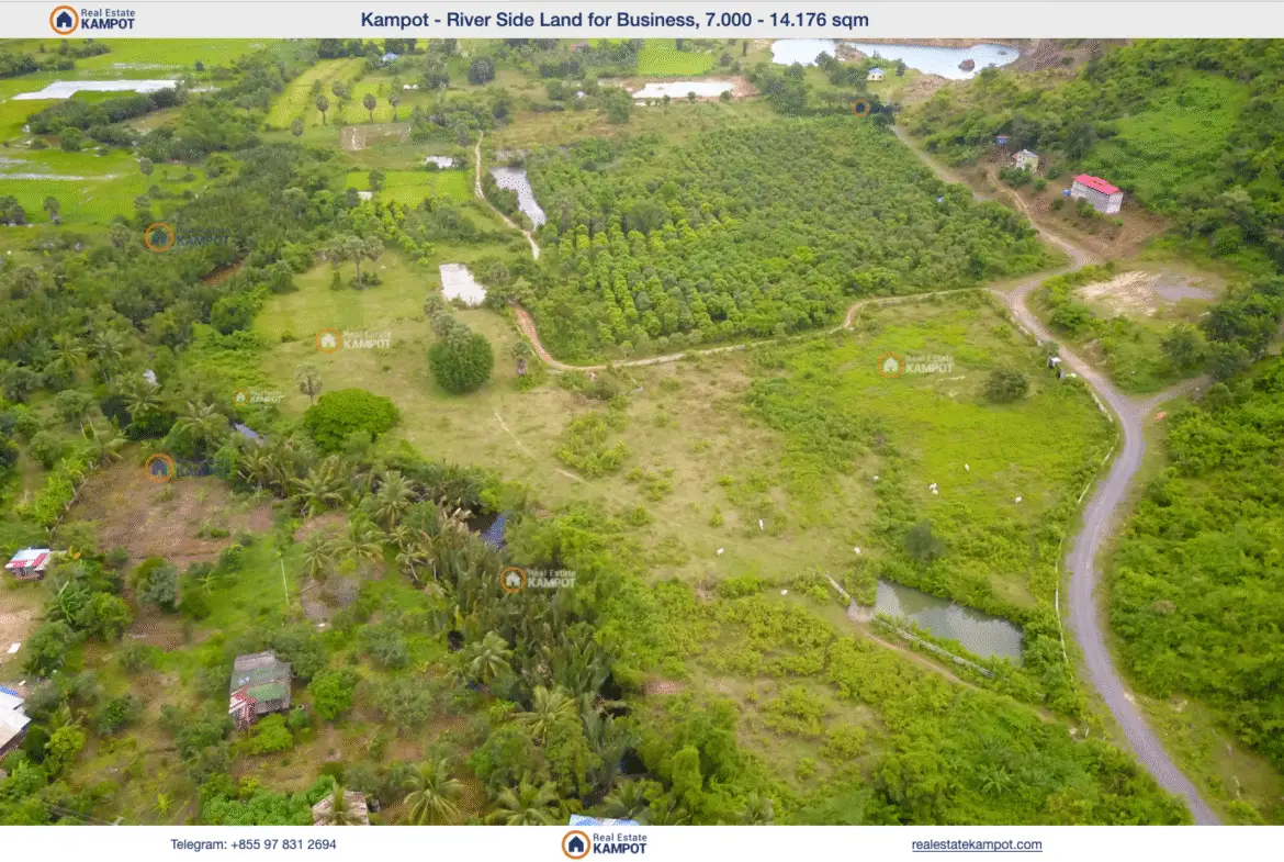 Kampot: Land for Business (River Side), 7.000 – 14.178 sqm, ready to built